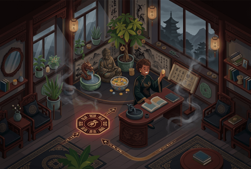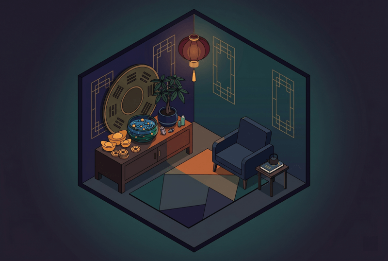 Lucky bamboo in the southeast corner. A wealth bowl tucked just so. Maybe even a red candle burning on a